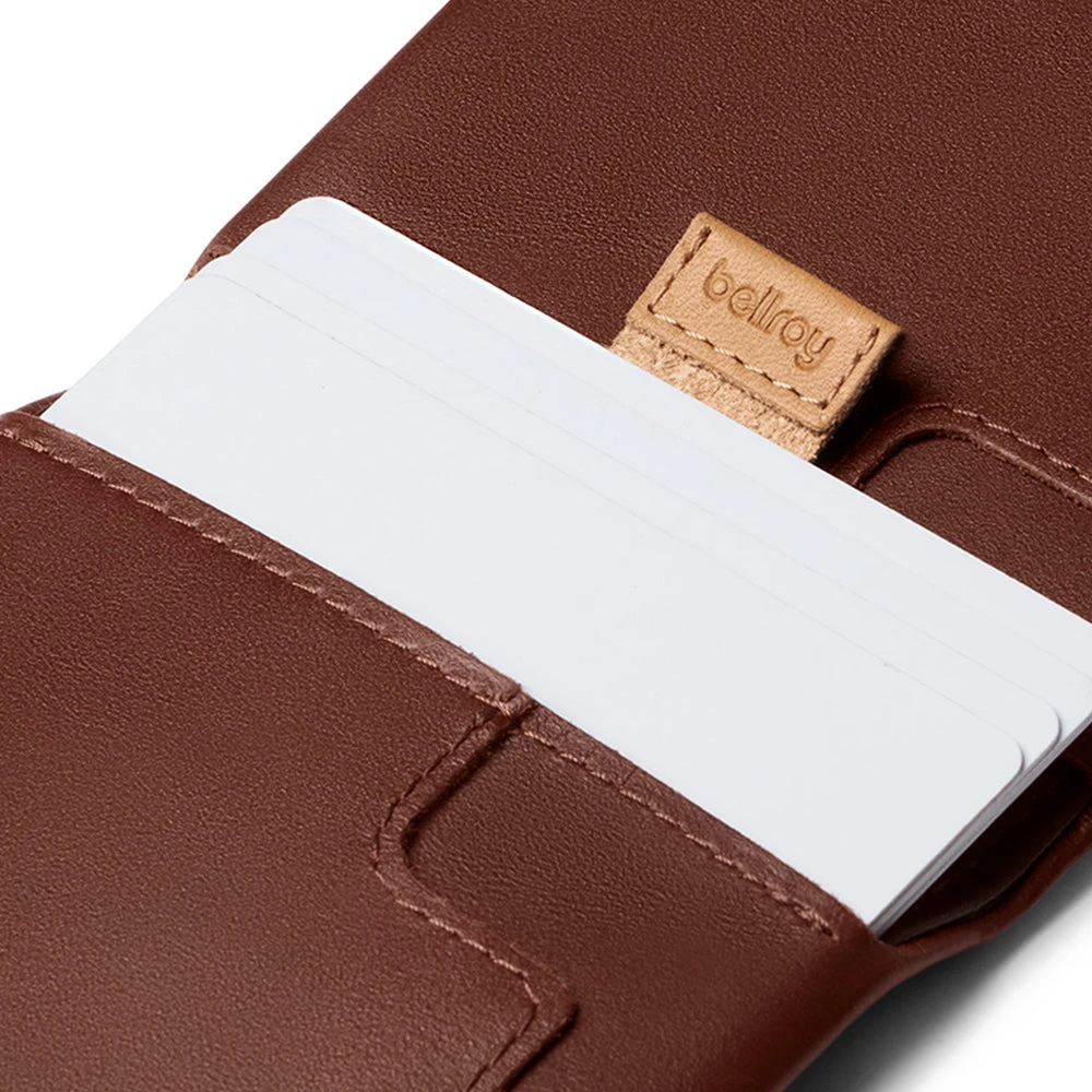 Bellroy’s crowd pleaser, The Slim Sleeve, has taken the next evolutionary step in wallet design. A clever blend of small and convenient, The Slim Sleeve is easy to underestimate. Two most used cards slot into the quick draw, then a tab lets you get to the less frequently used with ease. Most currencies fit in easily with a simple half fold. Part of Bellroy’s Nude Approach, the new Slim Sleeve has no linings and less waste; leaving you with a noticeably slimmer silhouette that’s also kinder to our planet.