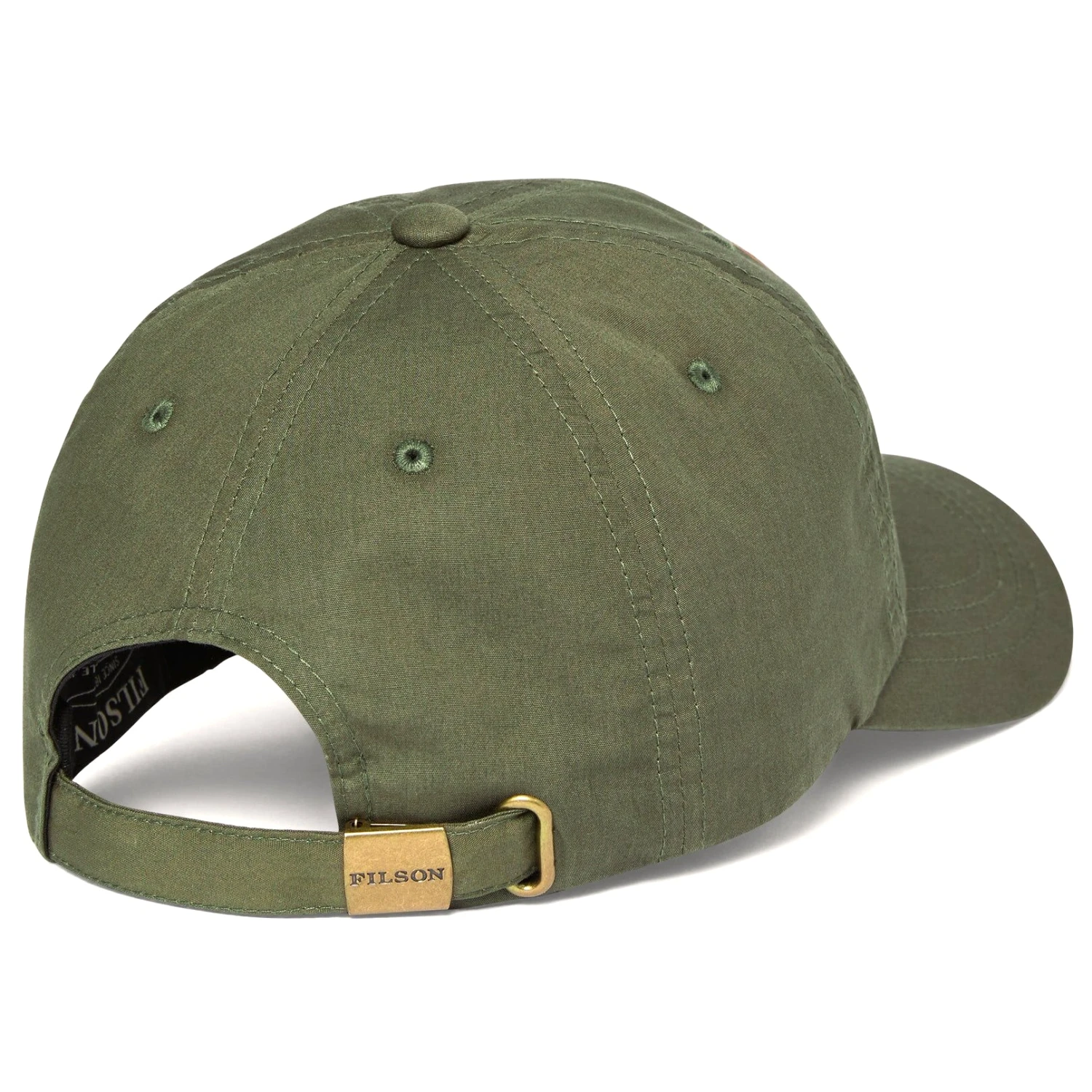 A lightweight six-panel, low-profile cap design from Filson, the Angler Cap is perfect for keeping the sun off when on the water or on the trail. With a large leather logo patch featuring Filson’s “Unfailing Goods” motto, adjustable fabric strap on the back to fit most head sizes.