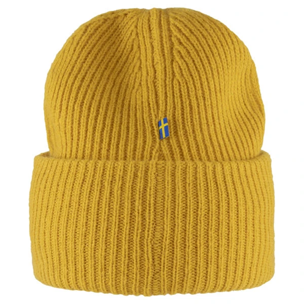 Rib-knitted hat from Fjällräven in a soft, warm lambswool. Robust, two-layer knitting with wide folded edge makes for a super cosy and warming hat. Embroidered original 1960 Fjällräven Logo emblem on the front.