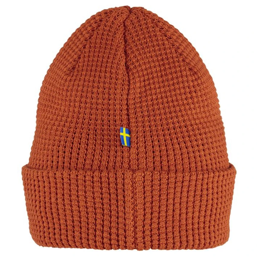 A soft, comfortable knitted hat from Fjällräven made from 100% recycled polyester. With a decorative waffle-knit and wide fold-up edge – the material of the Tab Hat wicks away moisture and dries fast, so it works well for both everyday life and when out on the hills. Small Fjällräven logo tab on the folded edge.