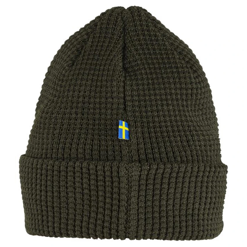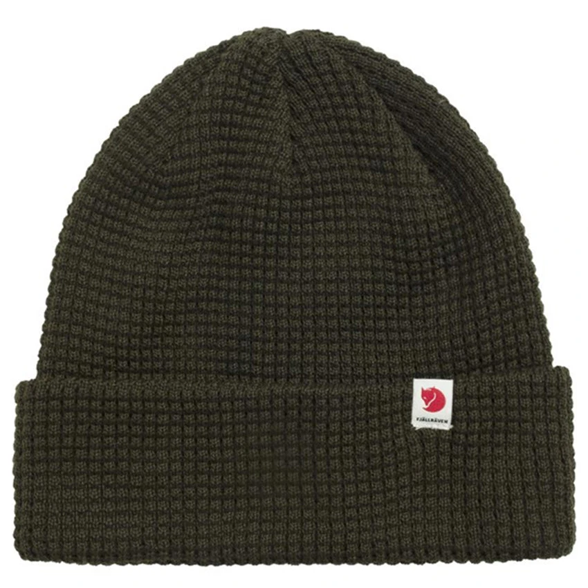 A soft, comfortable knitted hat from Fjällräven made from 100% recycled polyester. With a decorative waffle-knit and wide fold-up edge – the material of the Tab Hat wicks away moisture and dries fast, so it works well for both everyday life and when out on the hills. Small Fjällräven logo tab on the folded edge.