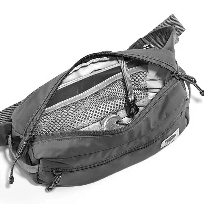 It has a security pocket and ventilating mesh on the back and the zippered main compartment has an open pocket and key clip. It can be packed into its own pocket, so it can take up minimal space in a bag or pack when it isn’t being used.