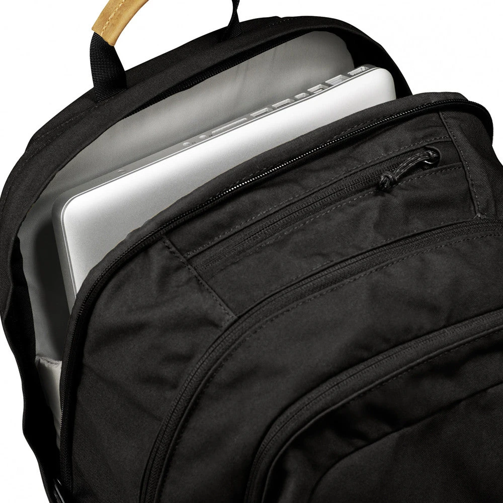 The simple design of the Räven 28L Backpack and its practical details make it perfect for commuting or everyday outings and day hikes. The main compartment is spacious with a zippered opening and a padded compartment for a laptop (up to 15 inches in size). A fleece-lined pocket with a zipper has room for sunglasses, a phone and there is also a zippered front pocket and two side pockets for drink bottles and other items you want to keep close at hand. Comfortable padded shoulder straps and foam frame sheet make for all day comfortable carry and the top handle is finished beautifully with a leather grip.