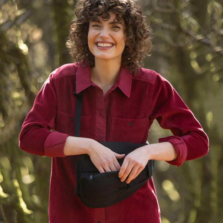 This sling bag features an adjustable rope shoulder strap with side release buckle to get the perfect fit. Two vertical zip compartments, two key or cell phone pockets and a padded back with KAVU embroidery to keep everything protected.