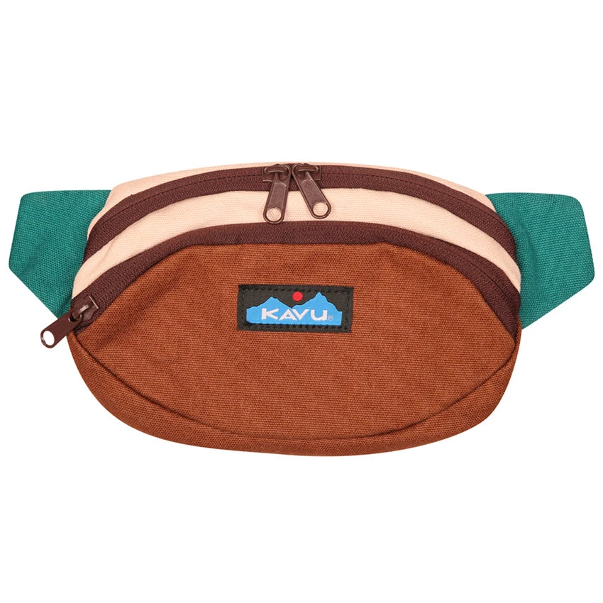 The belt bag from KAVU with adjustable straps and side release buckle, two compartment design with zip closure, padded back panel.