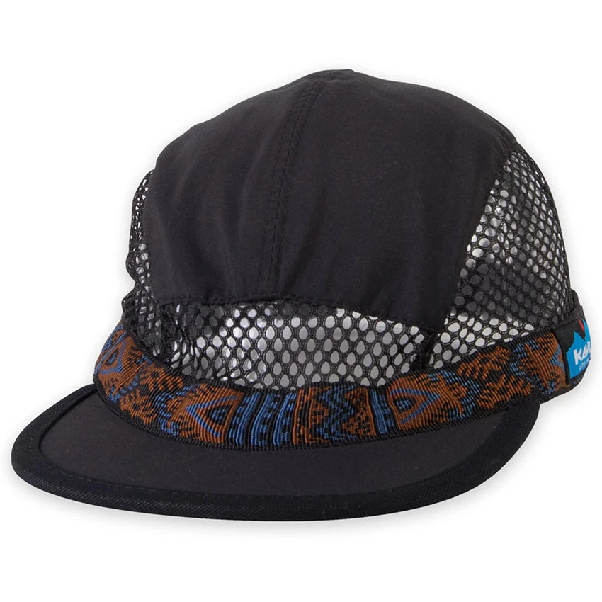 KAVUÂ have turned the 5-panel cap into the ultimate trail running hat, with ventilation mesh panels around the head and a black underbill to reduce glare, this is the perfect choice for extreme activity in the hot sun. The panel on top is a water resistant nylon, the bill is lightly curved and an adjustable strap on the back helps you to get it fit just right.