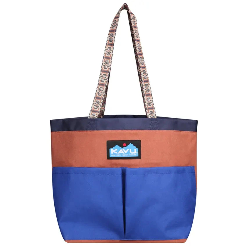 This burly tote from KAVU is made of cotton canvas and 600D water resistant polyester – great for a day out on the hills or a trip to the local shops. Complete with classic KAVU pattern webbing straps and two exterior pockets, this open tote can haul your towels, snacks and beverages all day long.