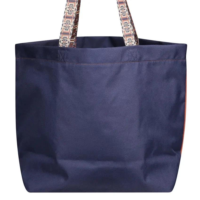 The Twin Falls Tote is a colourful block tote, with fixed pattern webbing shoulder straps secured with a hefty box stitch. Two exterior cargo pockets, internal zip and gusset pocket.