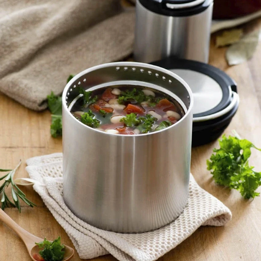 The updated lid creates an all-stainless interior so food never comes into contact with plastic, locks in leakproof storage in just a quick quarter turn and features an easy-carry swivel loop.
