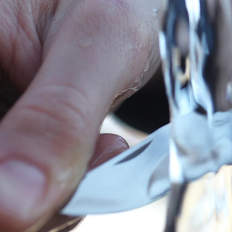 The classic Opinel blade has what they refer to as a Yatagan shape, inspired by a traditional Turkish saber. The blade is ground to an exclusive convex profile that ensures the strength of the blade and allows efficient regrinding. Invented by Marcel Opinel in 1955, the Virobloc safety ring has two sections, one fixed and one sliding. In addition to locking the blade open (safety in use), it is now possible to lock the blade closed (safety in transport).