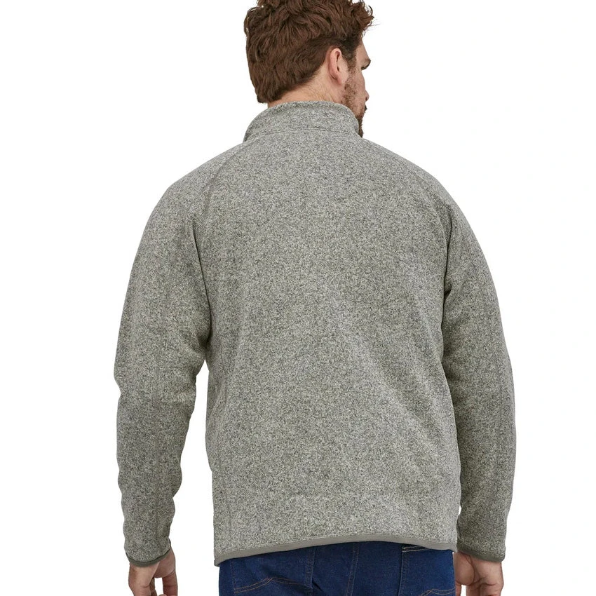 Made with 100% recycled polyester knitted fleece with a fleece interior and heathered yarns. The Men’s Better Sweater 1/4 Zip has a quarter-zip in the front for easy put-on-and-off, with zip-through stand-up collar and raglan sleeves for mobility and pack-wearing comfort. Zippered left-chest pocket and shape-holding micropolyester-jersey trim at cuffs and hem to resist abrasion.
