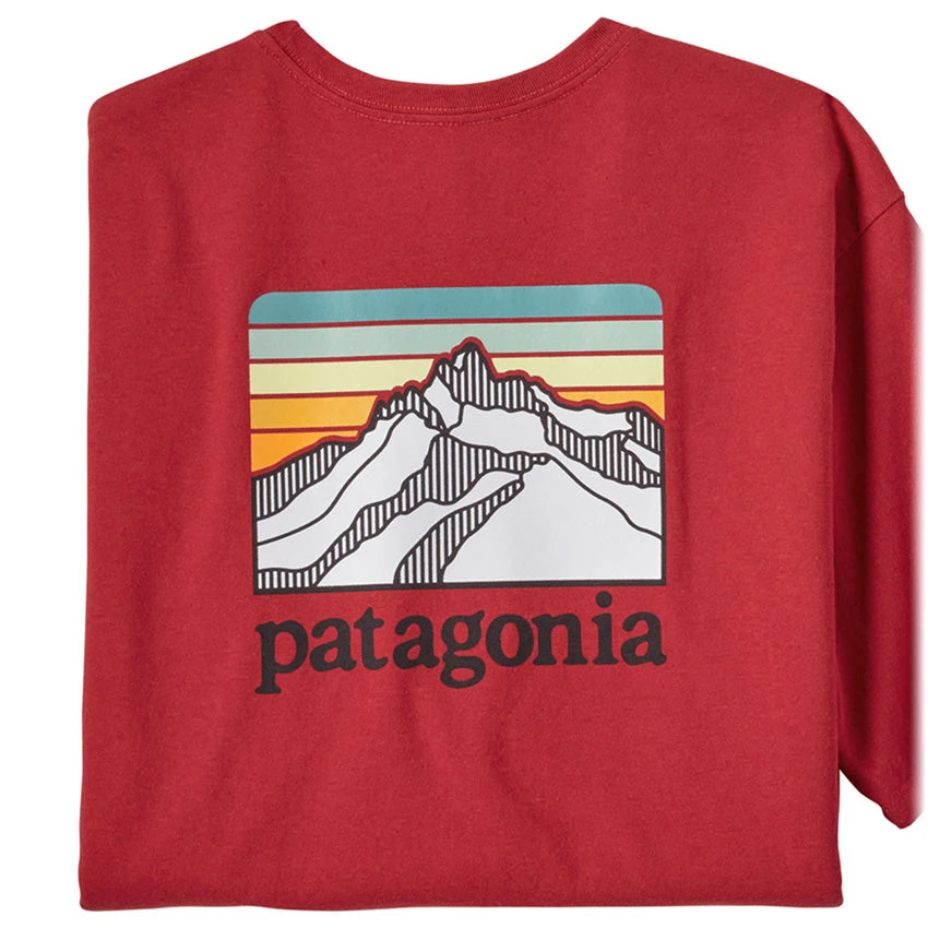 - Retro Patagonia original logo art on the back, small Patagonia logo detail on chest pocket