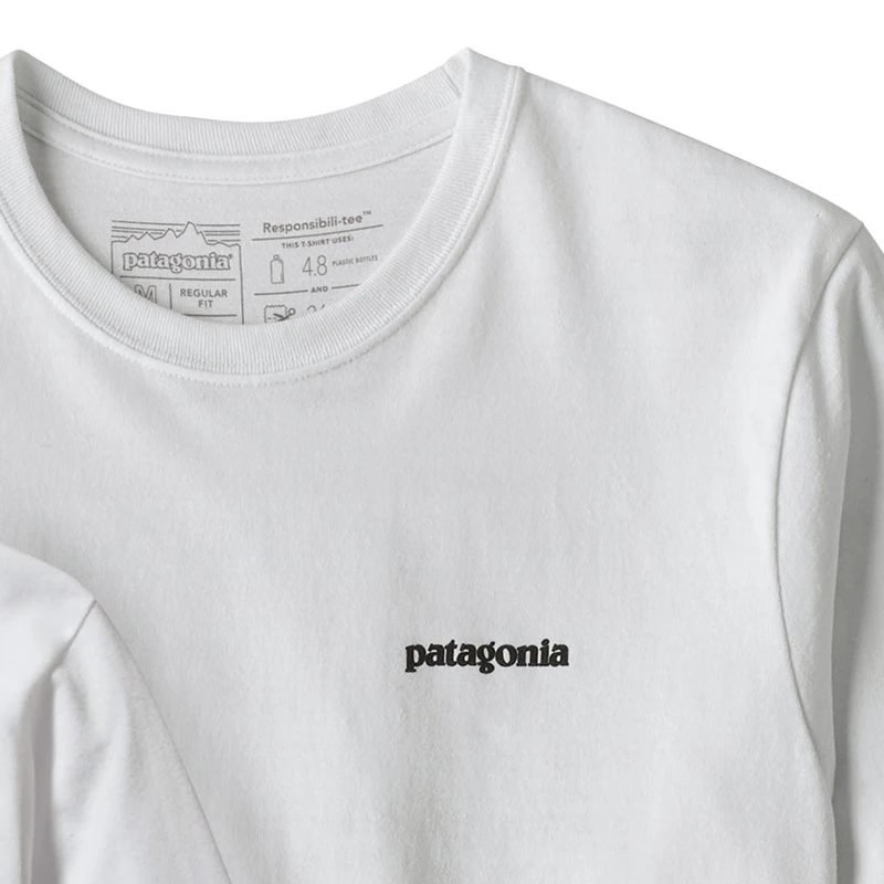 - Design: Classic Patagonia original logo art on the back, small Patagonia logo detail on chest