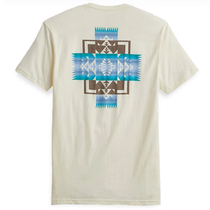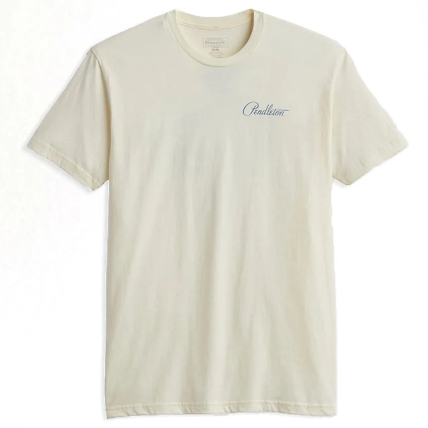 One of Pendelton’s most popular and iconic patterns of all time as a graphic back piece on this men’s cotton t-shirt. With a small cursive Pendleton logo on the front chest. The quality and softness of the cotton fabric makes this tee comfortable and lightweight, perfect for everyday wear.