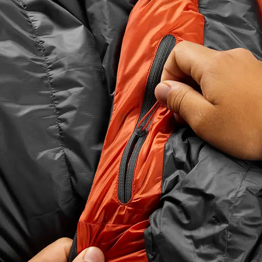 The generous mummy fit with wide foot box provide a spacious feel for an easy night’s sleep, and the close-fitting neck baffle keeps the heat in when the temperature drops. It has trapezoid shaped, boxwall baffles that stack neatly together, encouraging the hydrophobic duck down inside to loft fully and reducing the appearance of any cold spots. All of Rab’s sleeping bags are hand-filled in the UK and conform to the Responsible Down Standard, independently certifying down against animal welfare requirements and tracking it from the source to the final product. The generous mummy fit with wide foot box provide a spacious feel for an easy night’s sleep, and the close-fitting neck baffle keeps the heat in when the temperature drops. It has a ¾ length main zip with a down filled baffle to keep out the draught.
