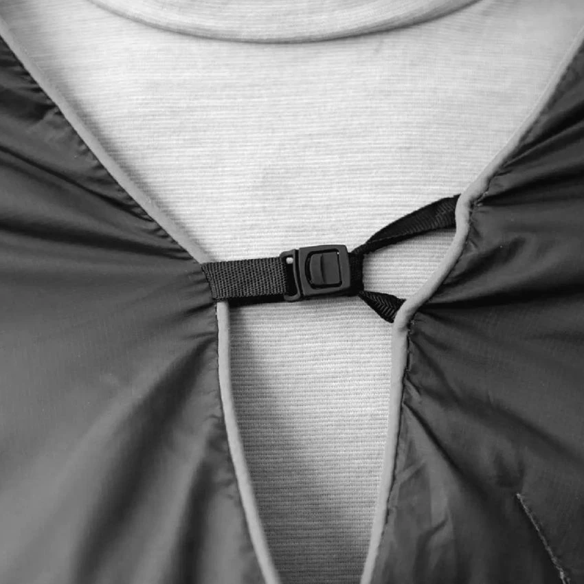 The blanket has a DWR (Durable Water Repellant) finish for stain and water resistance. Corner loops allow you to stake out the blanket as a picnic blanket, and a cape clip makes keeping it snugly wrapped around you totally hands free a cinch. Stuff sack included.